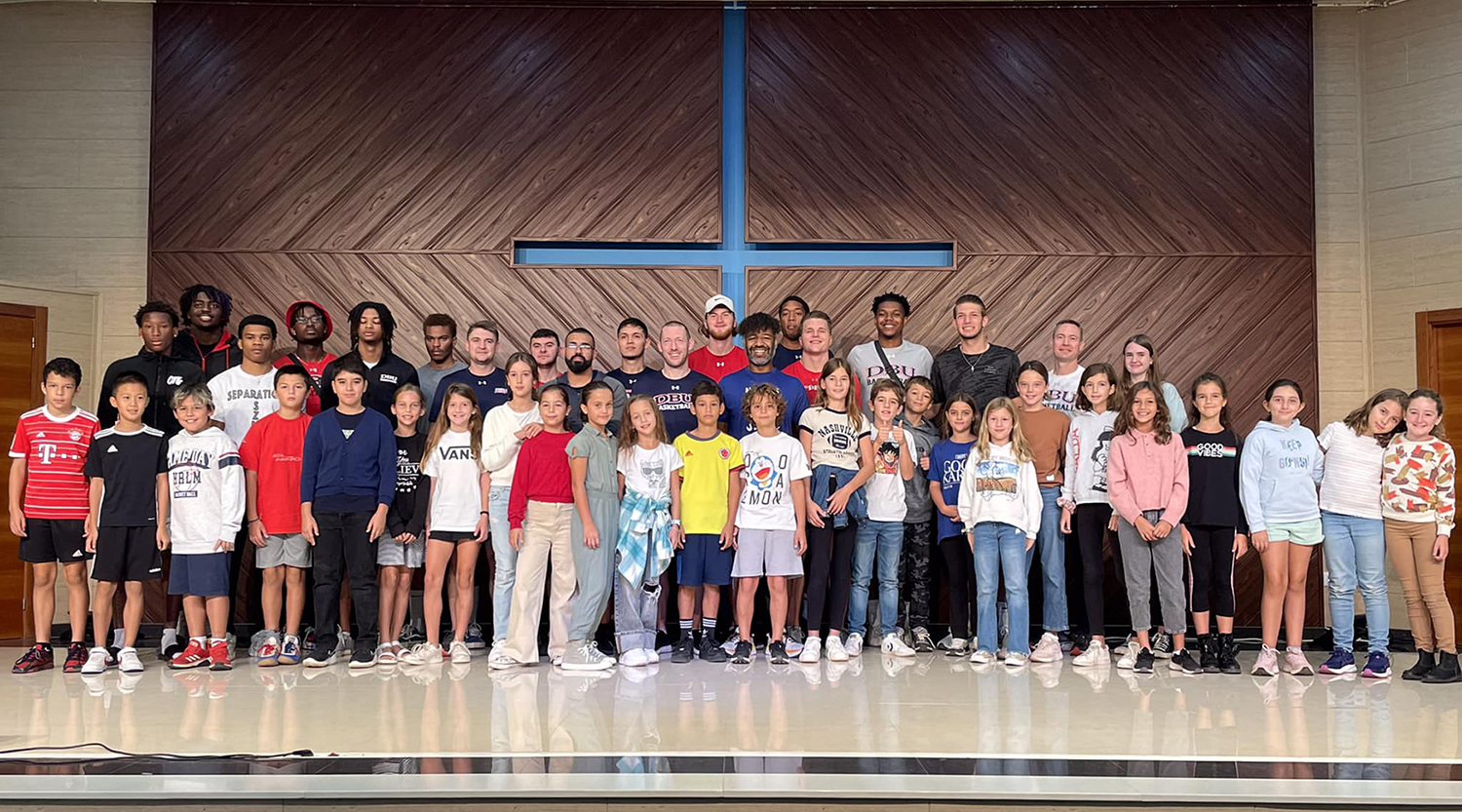 (Dénia, 18/10/2022) Un equipo de baloncesto de la Universidad Bautista de Dallas, Texas, visitó este mes España para compartir el evangelio y enseñar baloncesto a los alumnos del colegio Alfa y Omega de Dénia (Comunidad Valenciana).