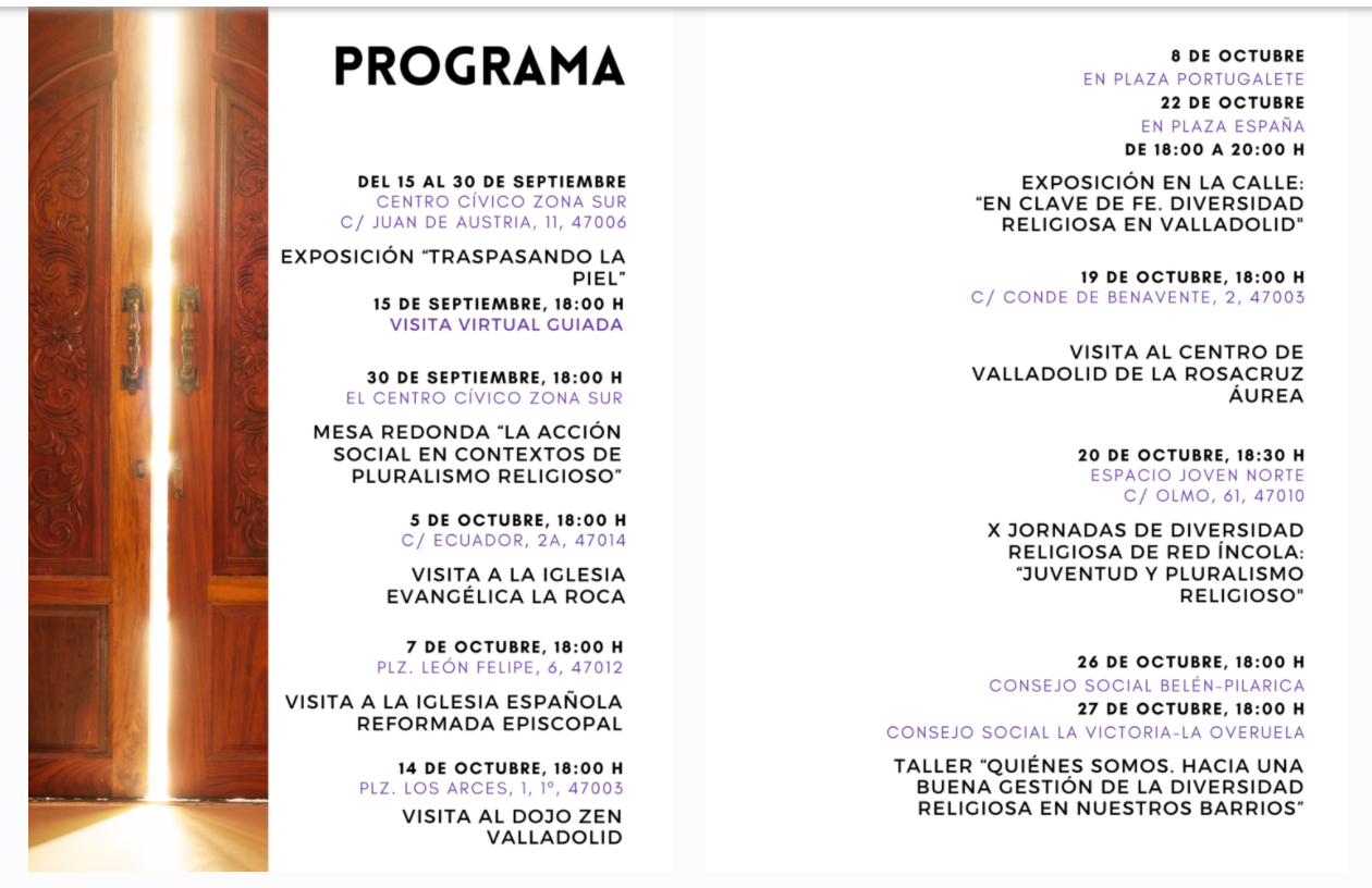 El evento tiene el doble objetivo de visibilizar la diversidad religiosa de la ciudad vallisoletana y promover el derecho a la libertad religiosa, de culto y de conciencia. Y para ello, estructuran su programa como un ciclo de actividades de carácter social, educativo y cultural.
